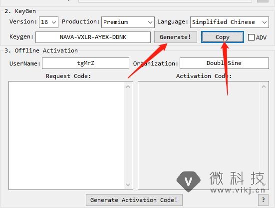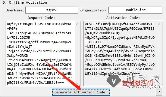 点击 Generate Activation Code进行激活.复制激活码.