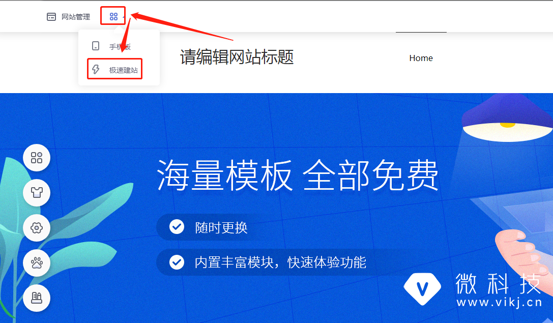 3.2. 如果想搭建新的英文版网站,可以在点击【查看】后进入英文版网站设计页面中,点击【极速建站】,选择合适的模板,重新设计搭建。