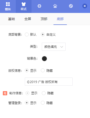 支持设置显示或隐藏版权信息,可自定义显示的版权信息内容。