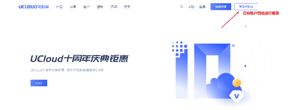 首先,进入UCloud首页,注册一个UCloud账号,点击注册。