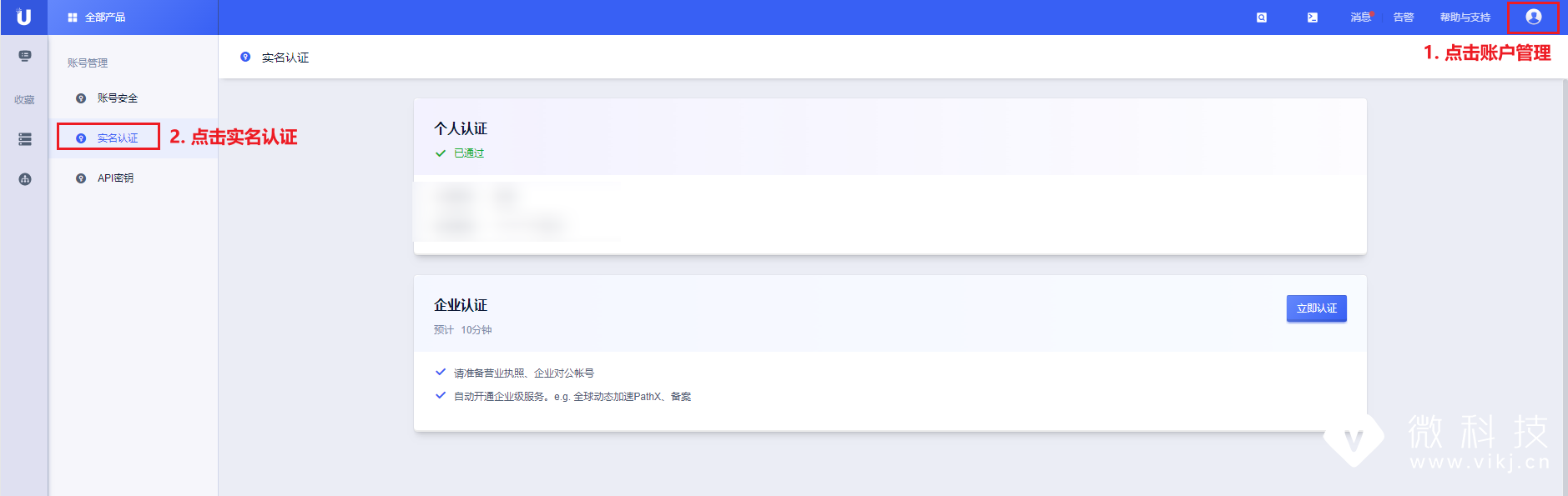 首次注册ucloud的用户需要先做ucloud平台的实名认证后才能购买产品,非首次注册可跳过此步骤。