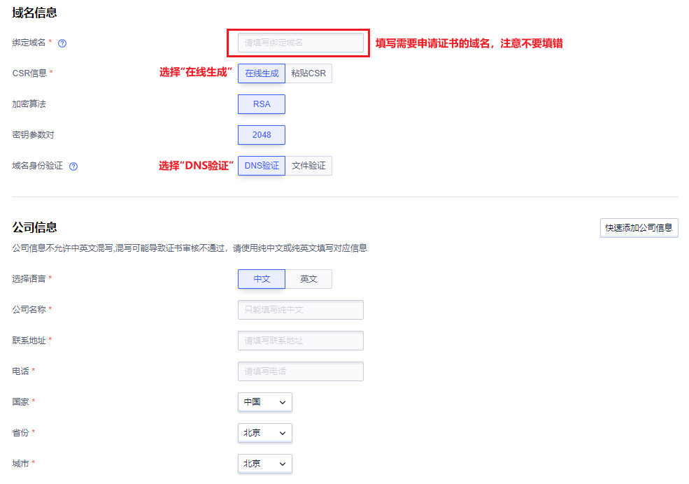 ① SSL证书的规则是一条域名对应一个证书,例如手机域名和电脑域名要实现https化,则需要购买两个证书(即操作两次本流程)