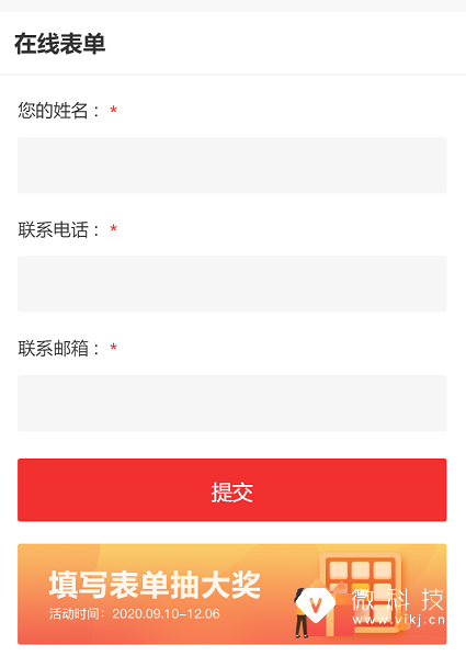 ② 关联含手机项的表单后,可选择会员或者手机号作为参与条件。前端表单的标题栏有中奖标识。也可通过表单的自由排版达到参与填写后可抽奖的广告效果。