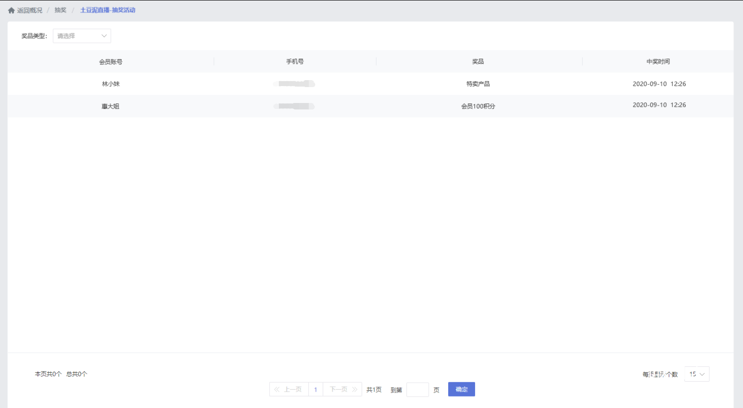 2.2 中奖详情跟踪,点击数据详情可浏览中奖情况,筛选奖品类型可快速进行核对。