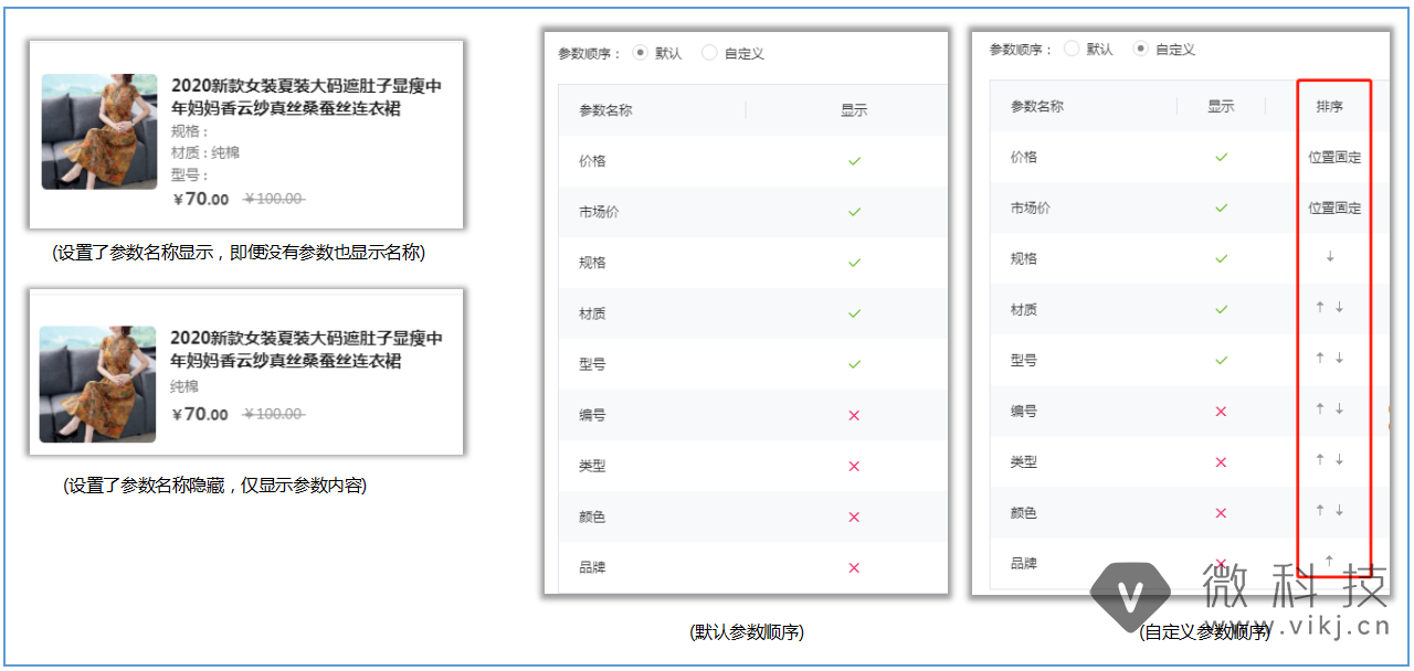 ② 参数名称:设置暗藏则在页面仅表明参数值,不表明名称;设置表明则无论该参数与否有参数值都会表明对应的参数名称。