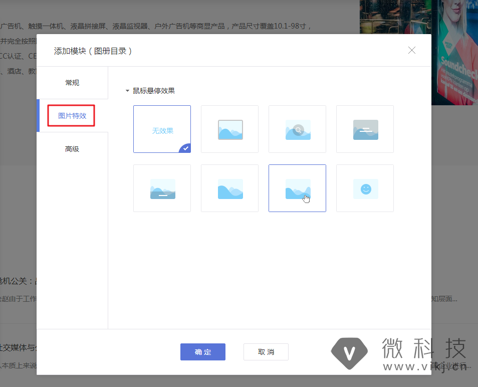 3.1 在【图片特效】中可选择鼠标悬停效果。