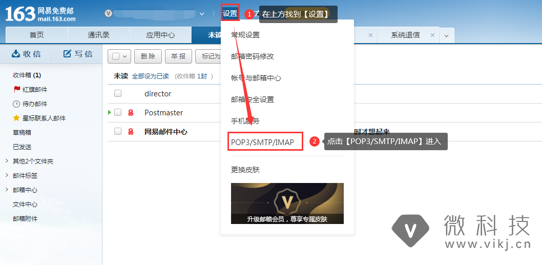 点击【设置-POP3/SMTP/IMAP】进入开启服务页面。
