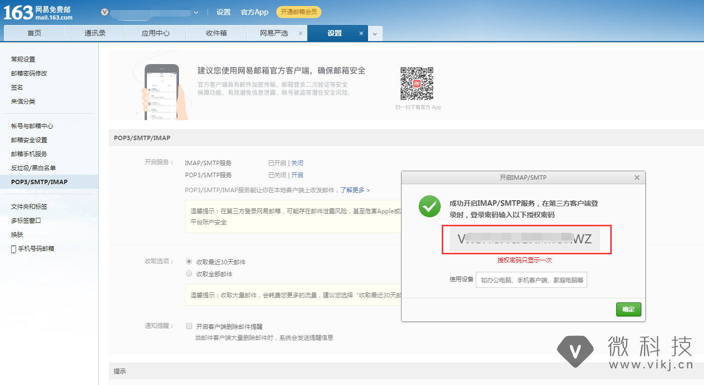 4. 163邮箱获取SMTP授权码